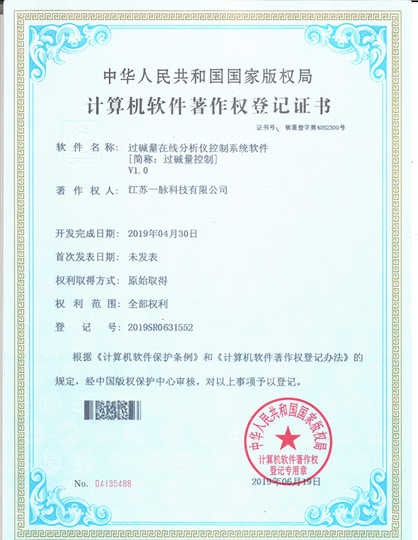 当前位置:首页 > 案例信息 > 荣誉资质 > 计算机软件著作权证书 > 过碱量