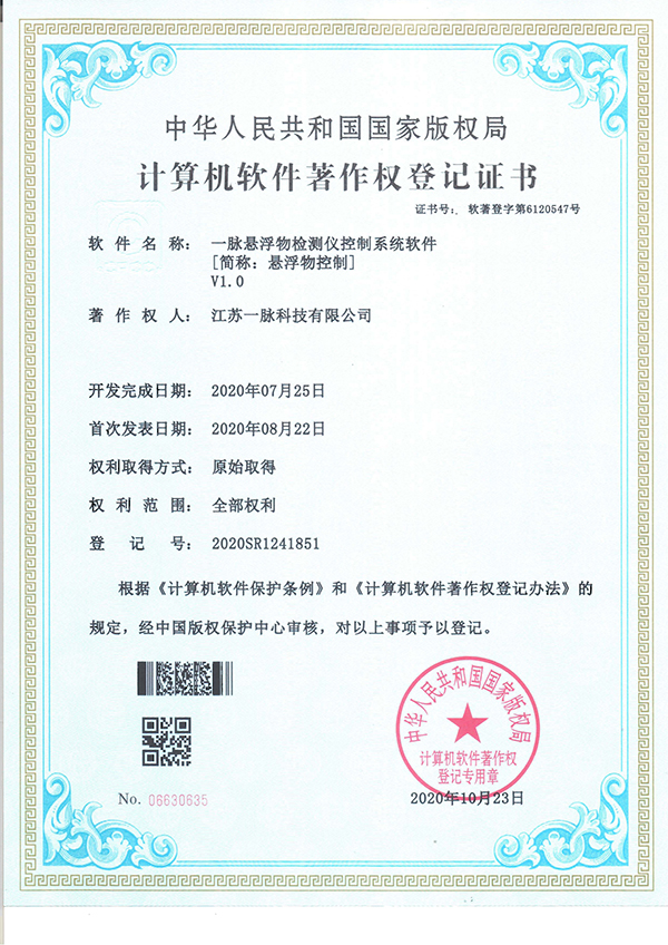当前位置:首页 > 案例信息 > 荣誉资质 > 计算机软件著作权证书 > 一脉悬浮物检测仪控制系统软件V1.0