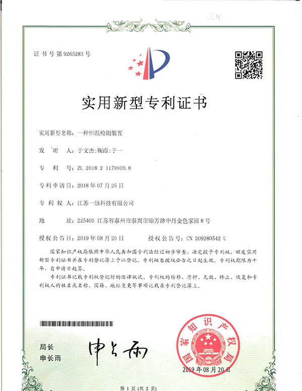 当前位置:首页 > 案例信息 > 荣誉资质 > 专利 > 一种恒温监测装置