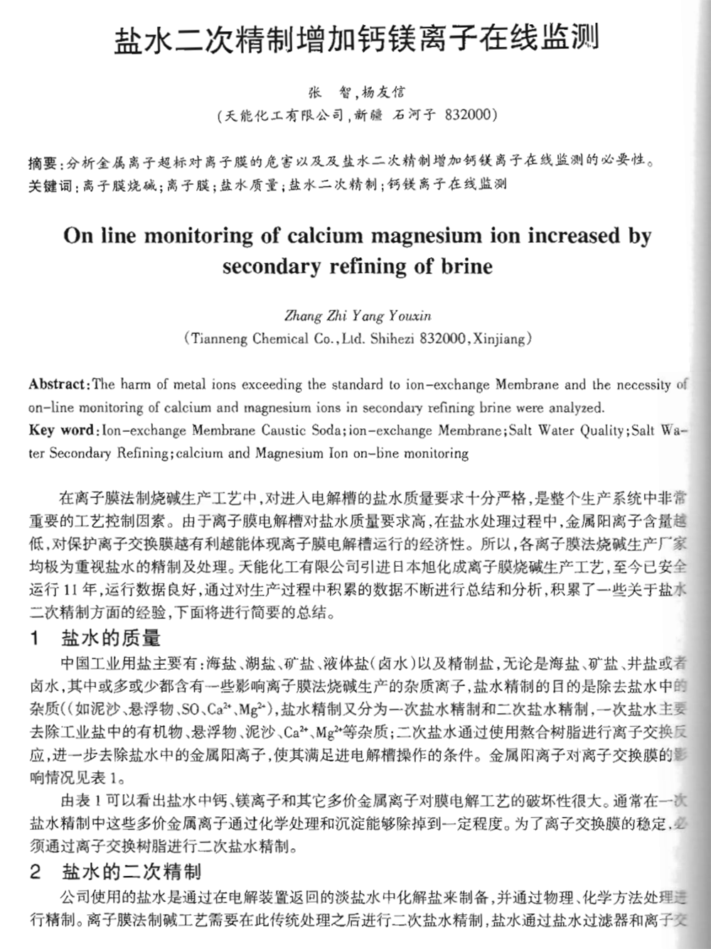 当前位置:首页 > 新闻信息 > 行业新闻 > 盐水二次精制增加钙镁离子在线监测