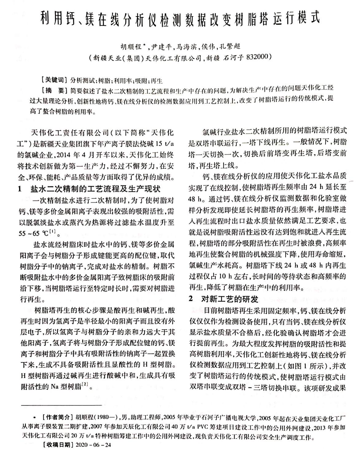 钙镁分析仪改变树脂塔运行模式